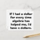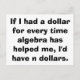If I had a dollar for every time algebra has helped me, I'd have n dollars.