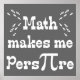 Humorous Math Makes me PersPIre saying with the Pi symbol in place of the Pi letters. Unique, Pi phrase for Pi day! Have a Happy Pi Day, 3-14 (March 14th) for the approximate Pi value of 3.14. Creative Pi Humor for the Math Lover, Math Student, Math Teacher or anyone that Mathematically celebrates Pi!