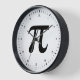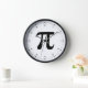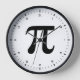 This clock features a black symbol of the Greek letter π. Instead of traditional numerals, there are 12 digits of Pi in black font. A great gift idea for a classroom or mathematicians/math lovers who celebrate Pi Day, which is observed on March 14th (3/14 in the month/day format) since 3, 1, and 4 are the first three significant digits of Pi.