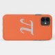 Orange background with a large light grey letter Pi on it. You can customise the background colour of the case as well as the background colour of pi.