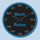 Looking for a math problem clock? This great math wall clock features the words "Math Rules" in blue on a black background in the center with a coordinating blue border. The numbers on the clock are printed in white and there are math problems which must be solved in order to know the time. This clock is perfect for the classroom or for any room where Math Rules! Copyright Kathy Henis