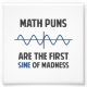 Math puns.... the first certain sign of madness! Or sine. Get it? Maddening, huh? Grab the great geeky design for yourself or your favourite mathematically inclined dork, math teacher, or student.