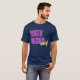 I give wanted to give this a 4 instead of a 5 because these Basic DARK T0shirts run unexpectedly SLIM or Narrow. Which is great if you do not have a potbelly, but I have a paunch. It isn't the shirt's fault that I've got a beer belly. The design and shirt itself is a quality cotton shirt. The color is more of a deep purple, but still a very pretty color. The Basic DARK T-shirts run a bit SLIMMER than the Basic Ts. The neck is a fraction narrower (or seems to be narrower) also. I'm a paunchy middle-aged woman and my neck is 12 inches (31cm) thick and the neckline fell about the same as in the photo of the man, and I had the desire to tug it a bit. So if you're a thick necked man or like loose shirts, be aware these are slimmer shirts. Once I get rid of my lockdown paunch it'll look great. The shirt washed well in cold water with no apparent bleeding. We don't have a dryer, so it hung dry. Did not shrink. Love the colors and the design. The design looks smaller on my shirt than it does on the model on-line. But still, it looks good on the shirt. The printing looks as it does on the model, just the size seems fractionally smaller. Washed garment in cold water, hung dry and design appeared unaffected.