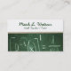 Math teacher's business card, with a photograph of a green chalk board showing math equations. Customise text on front and back to suit your individual needs. Change text style, colour, size, and add more text fields too, if you want.