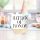 The perfect gift for a bride to give her best friend, her matron of honour! It has the word "MATRON OF HONOR” in a black modern font. Personalise the back with a name. It makes a great proposal gift, shower favour or bachelorette party favour! We have the matching black bride, bridesmaid, maid of honour, mother of bride, mother of groom and friend of bride glasses in my shop, PageCreativeDesigns.