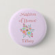 A lovely bridal shower button for the matron of honour, this design features a light purple background with "Matron of Honour" written in fun pink font with a pink and blue flower bouquet in the middle. Under the bouquet is your name in pink font. Personalise your matron of honour button today!