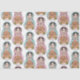 Soft pastel pink and blue coloured nesting doll illustrations repeated into a pattern. Hand drawn ink work, coloured with marker printed onto delicate tissue paper so you'll see all the texture and every change in colour.