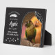 Remember your beloved pet bird forever with this photo plaque printed with a photo of your pet bird inside an arch-shaped frame adorned with a feather. Add your bird's name in a modern white script, their year of birth and year of passing, and a comforting and inspirational quote above a flock of birds flying high and free.