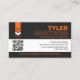 Matte black and bright orange double sided business card, perfect for a contractor, landscaper or similar, with your name in big letters in a hard to miss shade of orange against matte black. Add your custom QR code on one side and a photo of yourself or the services you offer on the other.