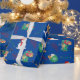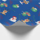 Matte Blue Reindeer, Snowman & Presents Wrap Roll Wrapping Paper