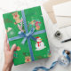 Matte Christmas Green Background Reindeer, Snowman Wrapping Paper