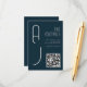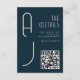 Modern Matte Monogram QR Code Minimal Wedding Navy Blue Enclosure Card