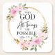 Matthew 19:26 Possible with God Pink Floral Square Paper Coaster