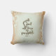 Inspirational Christian scripture throw pillow depicts a light blue and brown vintage abstract background. It features Bible Verse Matthew 19:26, "With God all things are possible."