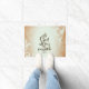 Inspirational Christian scripture doormat depicts a light blue and brown vintage abstract background. It features Bible Verse Matthew 19:26, "With God all things are possible." *