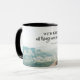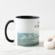 Inspirational scripture Christian custom coffee mug depicts a person walking on a nature path overlooking a beautiful mountain valley. It features Bible Verse Matthew 19:26, "With God all things are possible."