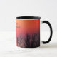 Inspirational scripture coffee mug depicts a beautiful red and orange sunrise over the water. It features Bible Verse Matthew 19:26, "With God all things are possible."
