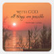 Inspirational scripture sticker depicts a beautiful red and orange sunrise over the water. It features Bible Verse Matthew 19:26, "With God all things are possible."_