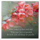 Inspirational scripture ceramic tile depicts a nature photograph of a branch of beautiful pink flowers with green leaves and background. It features Bible Verse Matthew 19:26, Jesus said, “With man this is impossible, but with GOD all things are possible.”