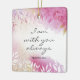 Inspirational quote Christmas ornament depicts a beautiful leaf design with a green and pink splash background. It features a portion of Bible Verse Matthew 28:20, in in the words of Jesus, "I am with you always." Personalise the back with a name or the details of your choice. *