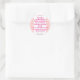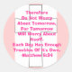 A cross with a pink background. Pink writing that says Matthew 6:34
