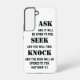 This bold Bible verse Samsung phone case shows the text of the Jesus quote from Matthew 7:7 in black against a white background. This ask seek knock scripture passage is a favourite reminder to ask God and trust his answer. It makes a great Christian gift or a bold way to show your faith.