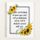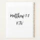 This planner features a Bible Scripture surrounded by a floral theme black frame with yellow sunflowers and green petals over the top of a white background displaying the Matthew 7:7 KJV Bible Scripture & Citation in a rebel print font with black letters on the cover of this sunflower Bible verse planner. The planner's pages of are printed on high-quality paper with wire binding and grid transparency with "Matthew 7:7 KJV" printed accross the back. This planner includes a monthly overview and weekly planning space made with 60 lbs. paper. This planner will make the perfect gift for yourself or others.