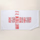 This beach towel features a bold print font with two-tone red faded letters displaying the "Matthew 7:7" KJV bible scripture and citation designed in the form of a cross with accents in the bible based theme. The front of this towel is a polyester blend, the back is 100% cotton with vibrant sublimation printing that is designed to last. Enjoy this towel for your next picnic, beach getaway or any outdoor activity you may attend all towels are machine washable with recommended low speed tumble dry.