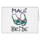 Maui wedding keepsakes and gifts for brides tying the knot in Maui, Hawaii. Picture of beach flip flps adorned with blue wedding bells. Personalise these destination weddding gifts and t-shirts with dates or names.