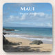 Coaster set is shown with a photo print of a beautiful beach on Maui, Hawaiian Islands.