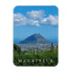 A beautiful photograph of clouds over a mountain in Mauritius printed on a souvenir fridge magnet.
