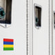 Illustration of the red, blue, yellow and green flag of Mauritius. Image available on various gifts and products. Magnets.