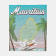 Illustrated map of Mauritius in a beautiful vintage or retro style, featuring a sea plane landing on a beautiful beach.