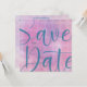 This Save the Date Card offers an elegant oversized blue coloured font with transparent background layers of pink, blue and mauve, all the copy on the back is editable, click the Personalise button to make this your own, enjoy!