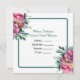 Elegant Wedding RSVP card with burgundy and magenta watercolor flowers details. Floral wedding theme.
