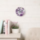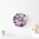 A modern wall clock with a chequered tile pattern with a subtle watercolor effect in mauve, purple and lilac colours. The numbers are a separate file and can be deleted if you do not need them. And you can also customise or delete the monogram text.