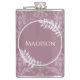 Enjoy your favourite alcoholic beverages anytime with a Mauve Elegant Damask Vinyl Wrapped Flask. Flask design features an elegant damask background and space to add your name adorned with delicate foliage. Additional gift items available with this design as well.