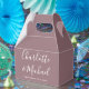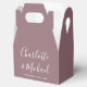 Elegant wedding favour box featuring chic signature script names and special date on a mauve background. You can personalise with your own thank you message on the reverse. A perfect way to say thank you to your guests! Designed by Thisisnotme©