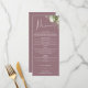 This elegant mauve floral botanical greenery leaves wedding menu can be personalised with your information in chic typography with your monogram initials on the reverse. Designed by Thisisnotme©