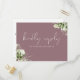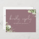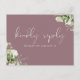 An elegant song request RSVP card featuring floral greenery and chic typography on a mauve background. The reverse features your details and a fun guest song request. Designed by Thisisnotme©