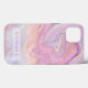 This elegant iPhone case features marbled strata design in shades of mauve and lavender with glitter and gold foil veins. Add your name for a personal touch.