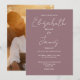 This mauve minimalist elegant script wedding invitation can be personalised with your information in chic typography and special photo on the reverse. Designed by Thisisnotme©