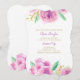 A beautiful, watercolor invitation with top and bottom borders of flowers in shades of pink and mauve. (<a href='https://www.freepik.com/free-vector/watercolor-spring-background_1671863.htm'>Designed by Freepik</a>). <br/><br/>The card is easy to customise with your wording, font, font colour and choice of six paper types.<br/><br/>Not exactly what you're looking for? All our products can be custom designed to meet your needs at no extra charge.<br/><br/>Simply contact us at askcottonlamb@gmail.com<br/><br/>Coordinating products available: