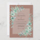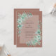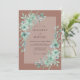 This design features a warm mauve backdrop adorned with delicate mint green watercolor wildflowers. The ethereal botanical sprays create a soft, romantic feel perfect for a sunset or outdoor event. Muted earthy tones blend seamlessly to evoke a vintage aesthetic. Elegant leafy vines and soft petals surround the central area with a natural, organic touch.