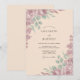 This design features a soft peach background adorned with delicate watercolor florals. Muted mauve roses and sprigs of greenery create a romantic and vintage-inspired aesthetic. Elegant eucalyptus leaves and small botanical accents provide a natural, airy feel. This palette is perfect for a classic spring or summer event.