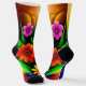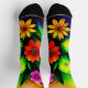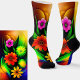 Mauve Orange Yellow Flowers on Gold & Green Design Socks - - see more great sock designs in my store.