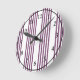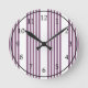 Mauve purple and white five stripes pattern round clock