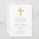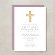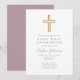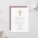 Personalized Mauve Script Religious Cross Boy First Communion Invitation.