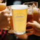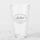 Beer glass for the wedding groomsman that features his name printed in a trendy, mauve, stylised script inside a mauve colour oval border along with wedding year date. A great party supply idea for a bachelor party! Personalise your beer glass by editing and replacing name and date with your own. Available in many, popular wedding colour schemes.
