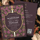 Invite your wedding guests with this Royal Sword & Shield Mediaeval Fantasy Monogram invitation with purple florals and a mauve background. This design is perfect for couples seeking a regal, yet modern-day mediaeval fantasy aesthetic. Personalise the text, font, and colours to suit your design preferences. Matching Items in our shop for a complete party theme. PLEASE NOTE: The gold featured in this design is NOT real foil.